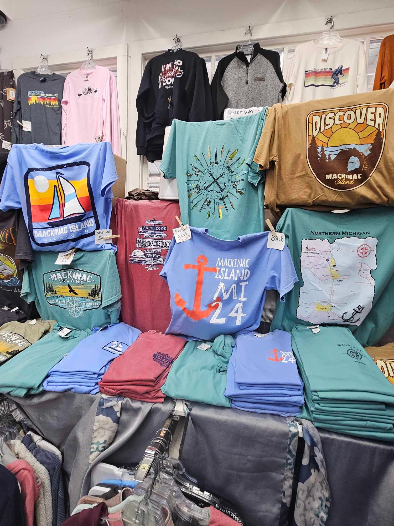 Our flagship store, Highstone's, is home to our largest selection of warmer clothing such as good quality hoodies, jackets, and pants. Located right next to the former Star Line dock downtown, it's the perfect place to pick our your souveniers before catching the ferry back to the Mainland. Costume jewelry, t-shirts that will make you laugh, and many more Mackinac Island novelties will help you remember this magical island!